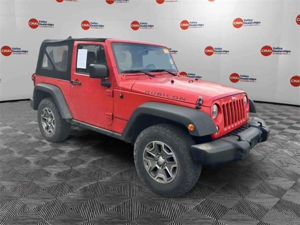 *BLUETOOTH*, *HEATED LEATHER SEATS*, *NAVIGATION*, *ONE OWNER*, *RECENT TRADE IN*, *SIRIUS XM*, Wrangler Rubicon, 2D Sport Utility, 3.6L V6 24V VVT, 5-Speed Automatic, 4WD, Firecracker Red Clear Coat, Dark Saddle/Black w/Cloth Bucket Seats or Leather Trimmed Bucket Seats, Auto-Dimming Mirror w/Reading Lamp, Class II Receiver Hitch, Connectivity Group, Front 1-Touch Down Power Windows, Power Convenience Group, Power Heated Mirrors, Power Locks, Quick Order Package 24R, Remote Keyless Entry, Security Alarm, Tire Pressure Monitoring Display, Trailer Tow Group, Trailer Tow w/4-Pin Connector Wiring, Vehicle Information Center.